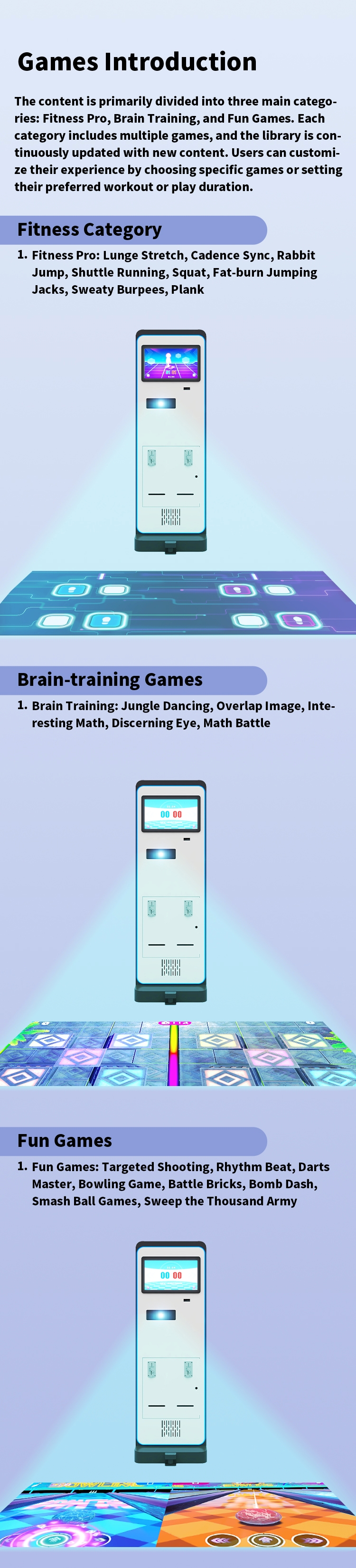 The content library includes fitness games, brain training challenges, and fun interactive experiences that support both entertainment and educational goals. With support for multi-user interaction, real-time visual feedback, and customizable content, this immersive projection playground helps venues increase visitor engagement, extend dwell time, and create memorable interactive experiences that drive repeat visits.